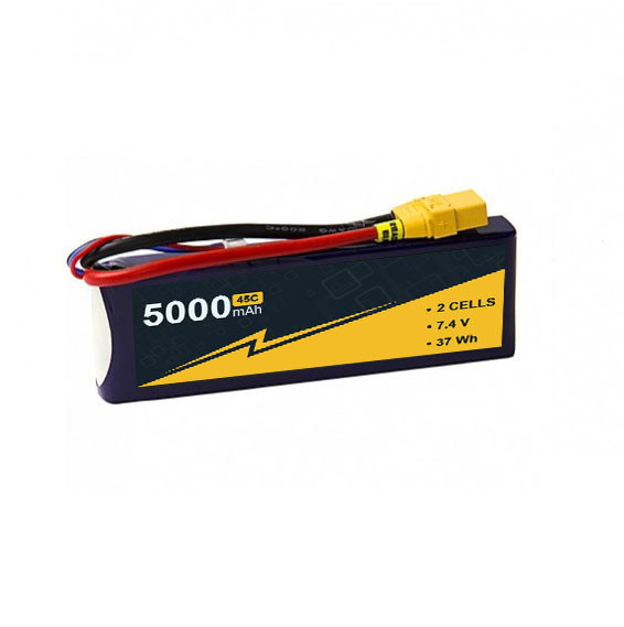 7.4V 45~90C 5000mAh 2S Lipo Batterie avec w/XT-90 pour la batterie de l'avion RC